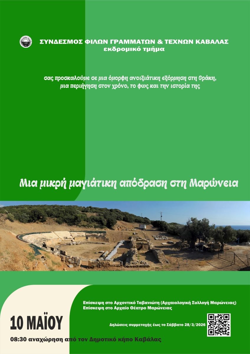 - 12:50 – 14:50 – Μαρώνεια: Επίσκεψη στο Αρχαίο Θέατρο στις πλαγιές του Ισμάρου, και στους παρακείμενους αρχαιολογικούς χώρους με ξενάγηση από πιστοποιημένο ξεναγό